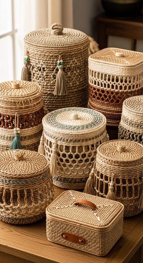 Baskets combine function and design, perfect for kitchens that need extra storage without clutter.