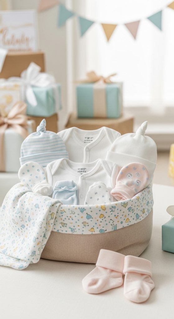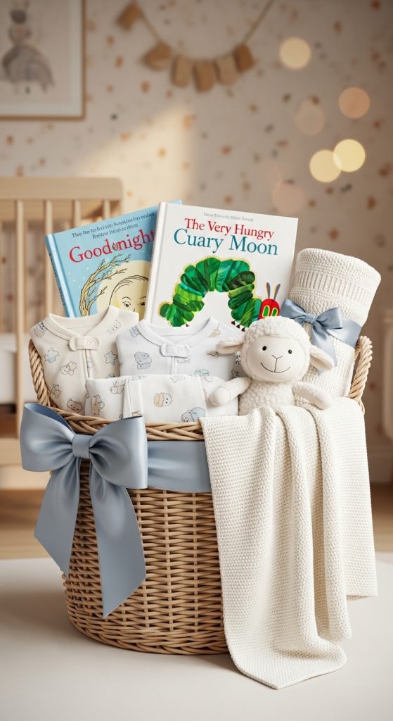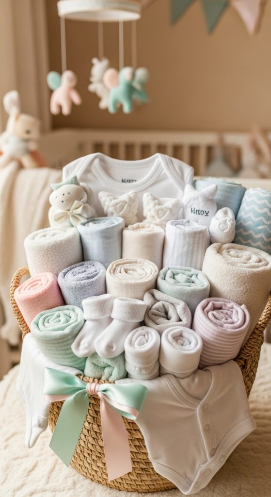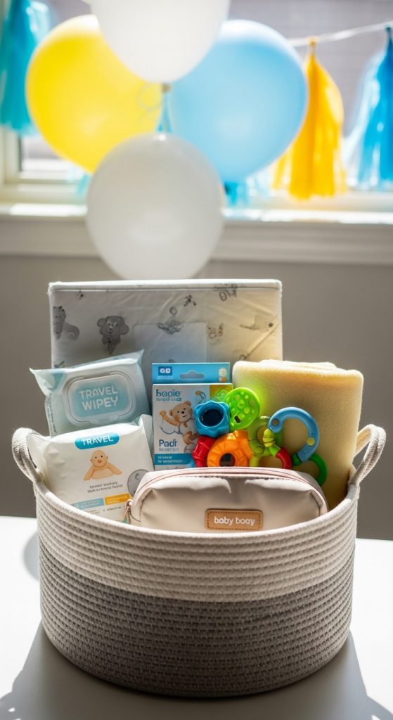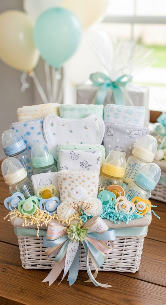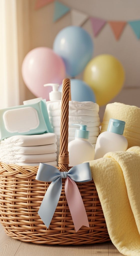 A newborn essentials basket is one of the most useful gifts you can give at a baby shower. This basket includes everyday items that parents will need during the baby’s first weeks.