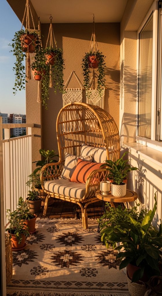 1. Boho Rattan Balcony Aesthetic