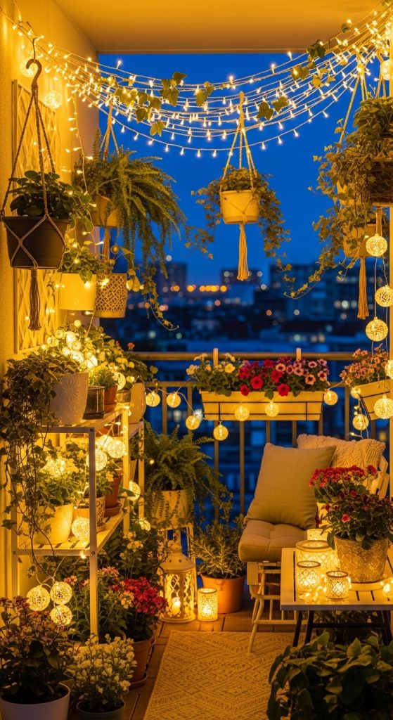 4. Fairy Light Balcony Garden Aesthetic