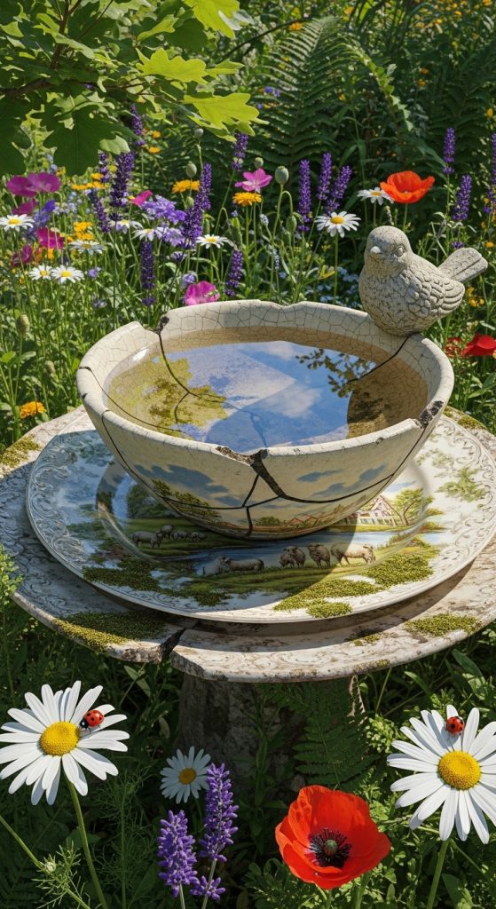 Pinterest trends for upcycled bird baths focus on creativity, sustainability, and aesthetic garden design.