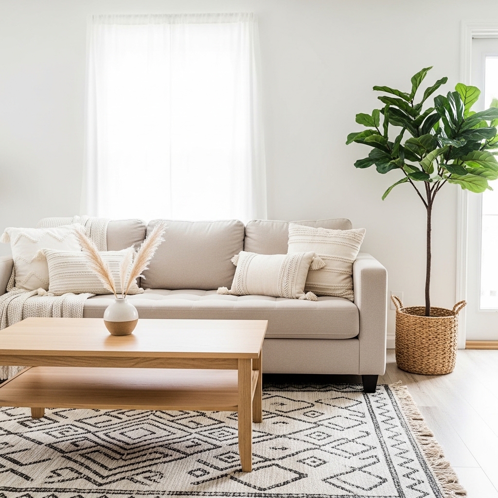 - Add a jute or woven area rug.