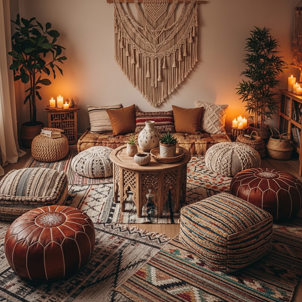 - Add floor cushions and poufs.