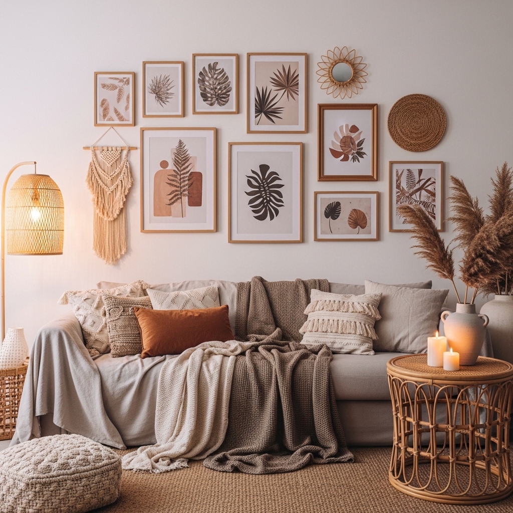 8. Boho Living Room with Gallery Wall