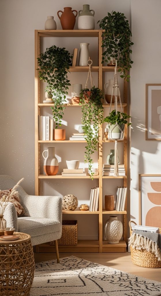 9. Boho Bookshelf with Plants