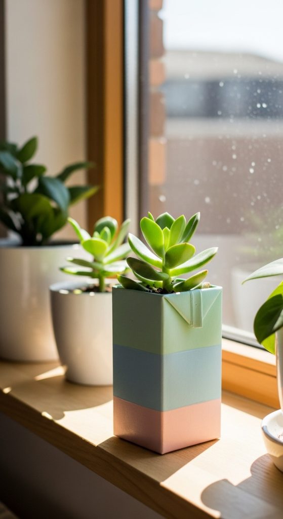 These carton planters are perfect for windowsills, desks, or shelves. You can also cluster several of them together for a mini indoor garden display.