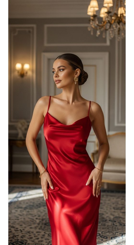A cool red slip dress is one of the most effortlessly chic wardrobe staples you can own. Its simple silhouette allows the bold color to shine, creating a look that feels modern, confident, and endlessly versatile. This style works for casual days, date nights, and even formal settings when styled correctly.