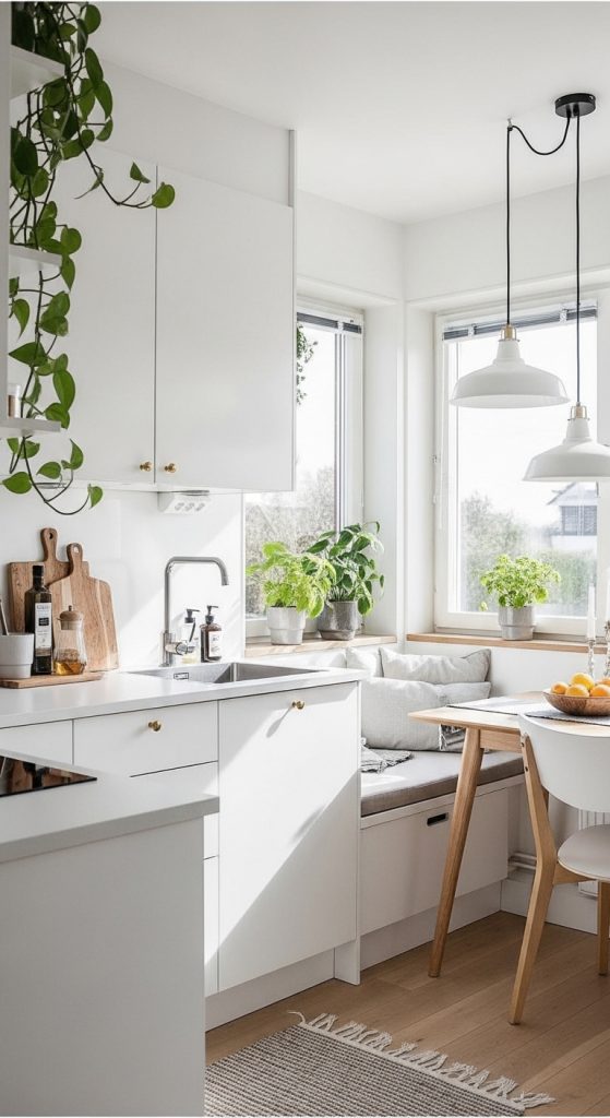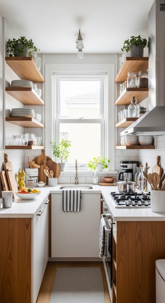 Decorating a tiny kitchen also requires a thoughtful approach. Instead of overcrowding the space with too many decorative elements, it’s better to focus on a few meaningful details. A small plant, stylish dishware, or decorative jars can add personality without overwhelming the room.