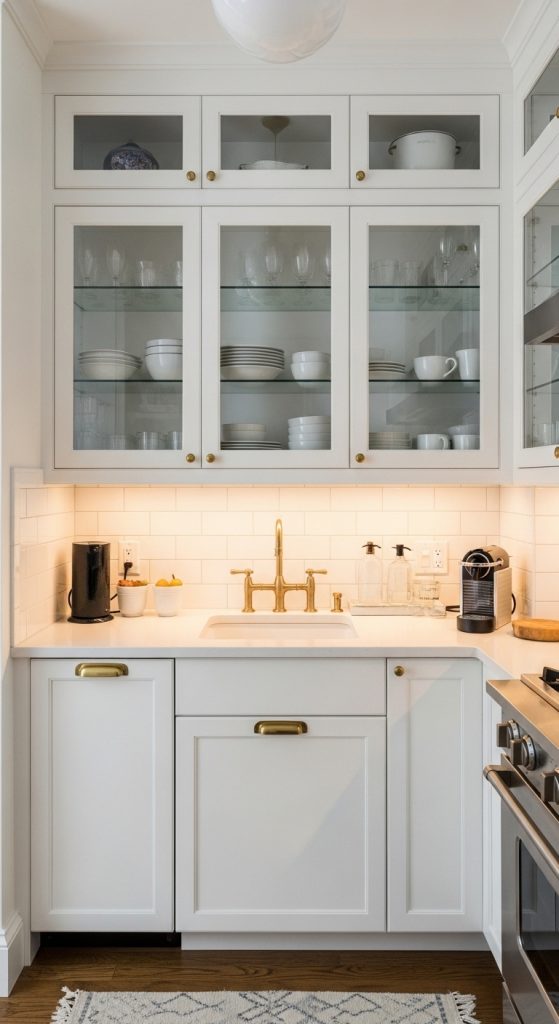 Glass cabinet doors can make a tiny kitchen feel more open.