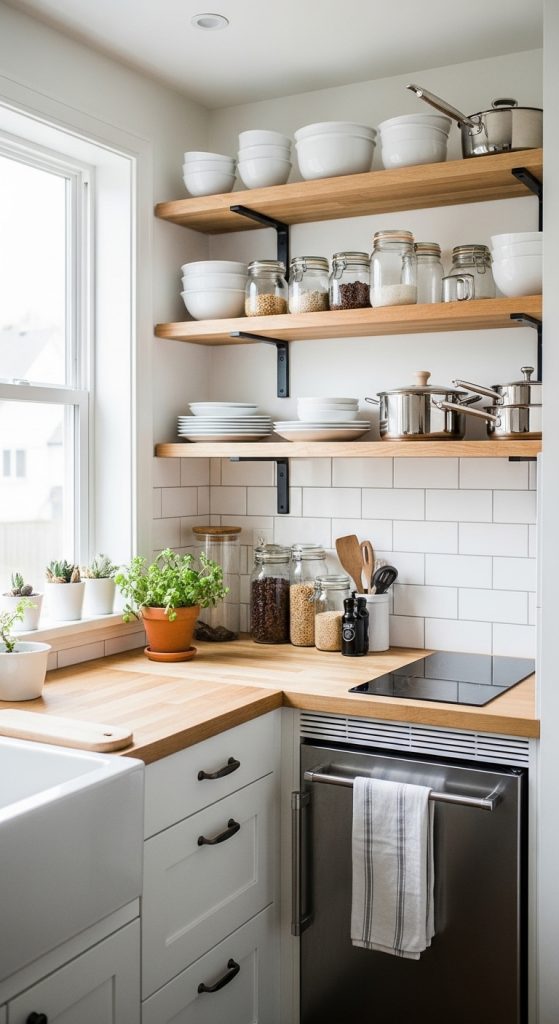 Vertical storage is one of the most effective solutions for tiny kitchens because it utilizes wall space instead of valuable floor space.