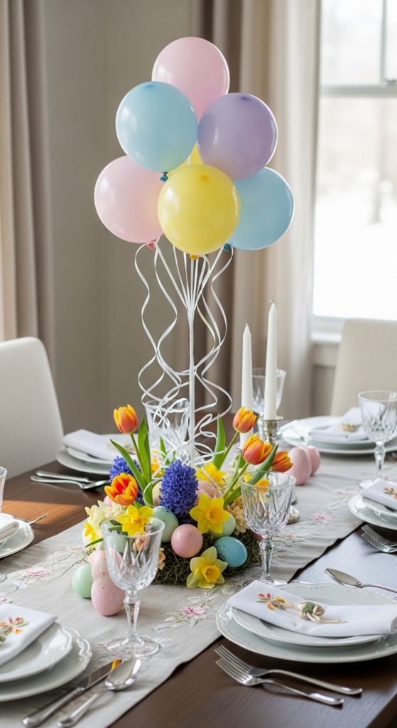 Balloon centerpieces are perfect for Easter dining tables.