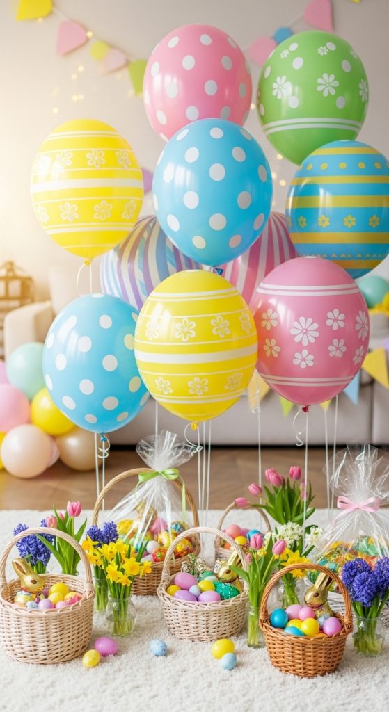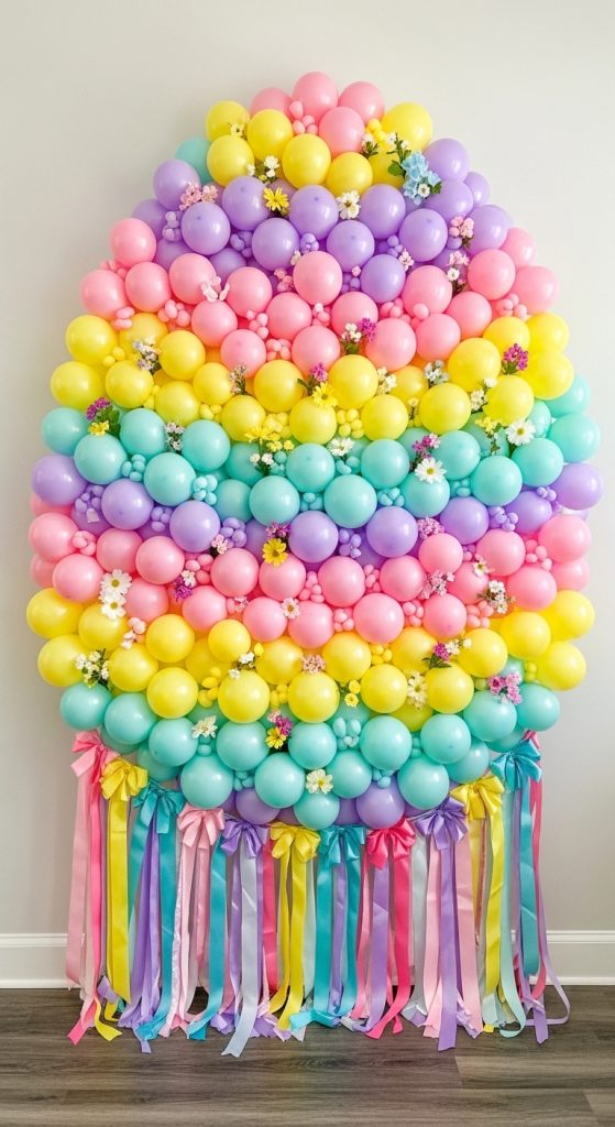 Use oval-shaped balloons in different pastel colors and arrange them in a pattern on a wall to resemble Easter eggs.