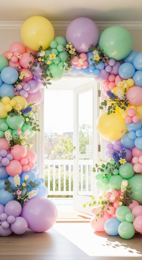 A pastel balloon arch is one of the most popular Easter decorations.