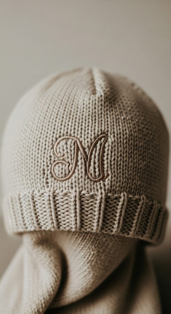 Baby hats embroidered with names or tiny icons add a personal touch to newborn essentials.