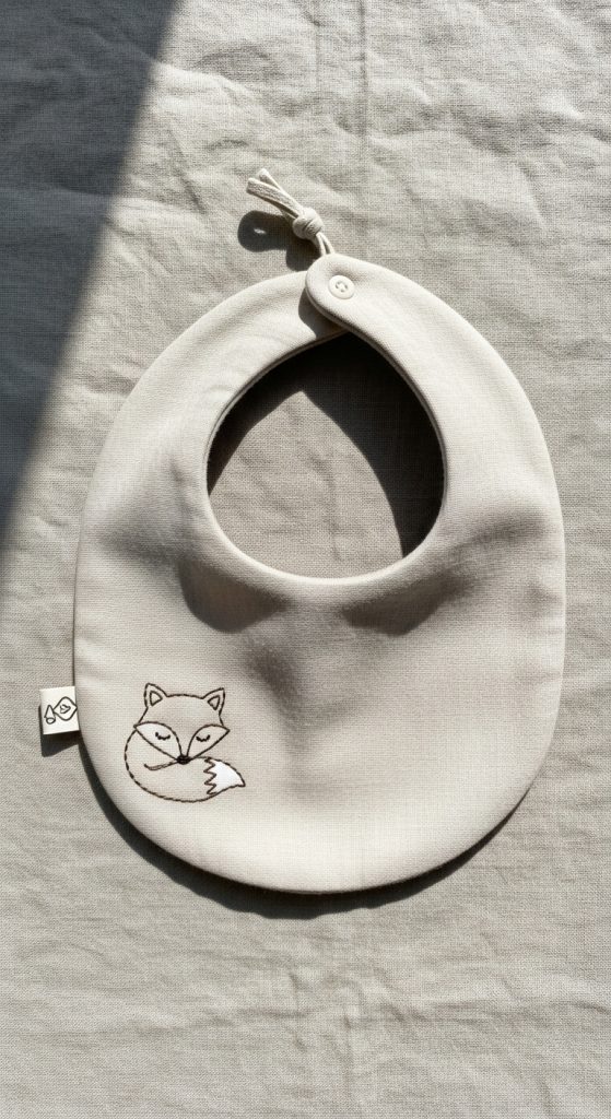 Baby bibs embroidered with names, animals, or phrases add charm to a daily essential.