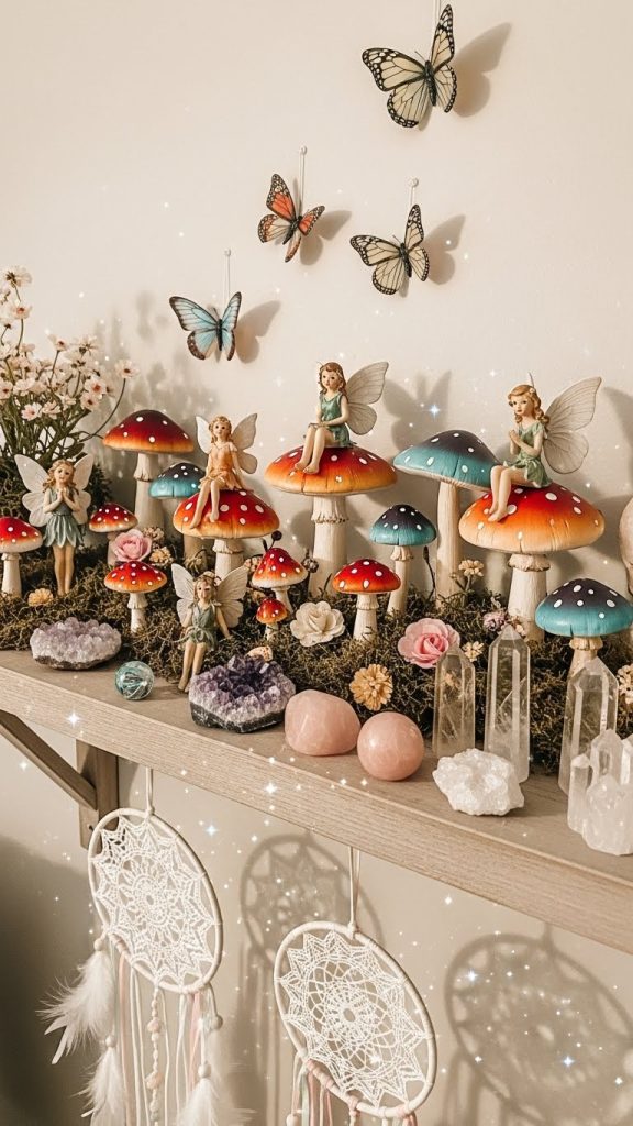 Accessories are what really bring a fairy bedroom to life. Look for items like fairy figurines, decorative mushrooms, butterfly wall hangings, dream catchers, and whimsical clocks. Crystals, glitter jars, or celestial-themed items like stars and moons also work well. Small touches can transform a simple bedroom into a fantasy-inspired sanctuary.