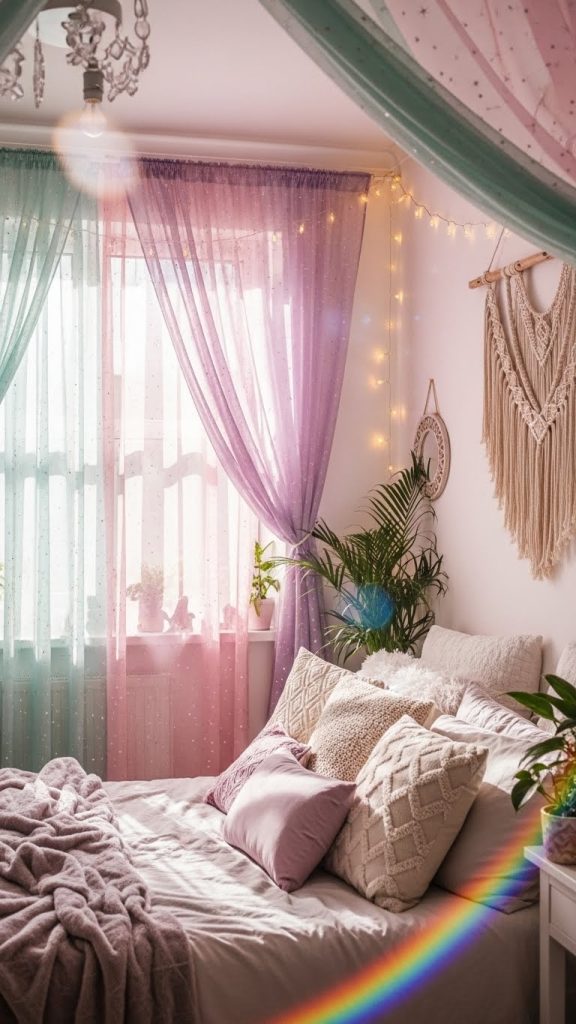 - Consider curtains with tiny fairy lights embedded or attached for nighttime magic.