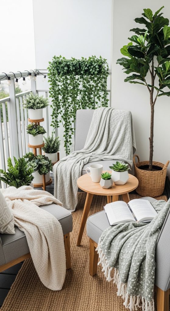 10. Balcony Green Setup with Faux Plants