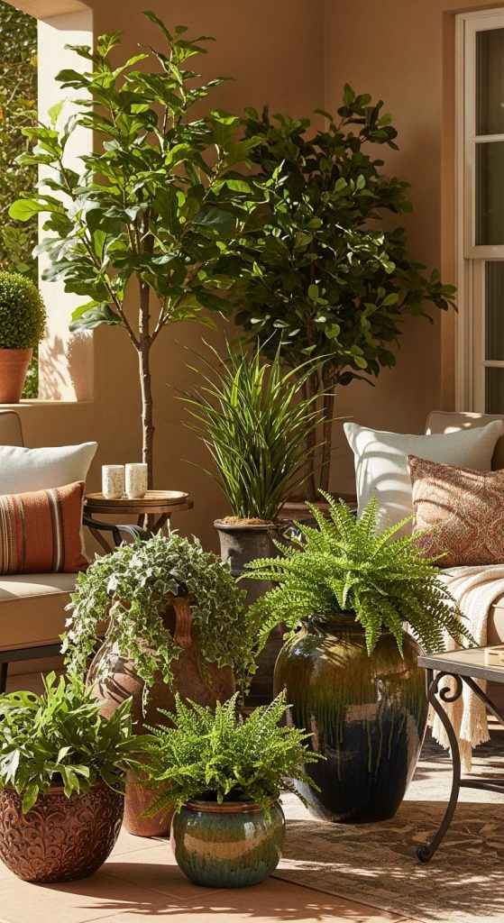 Potted artificial plants are perfect for adding greenery to patios and balconies.