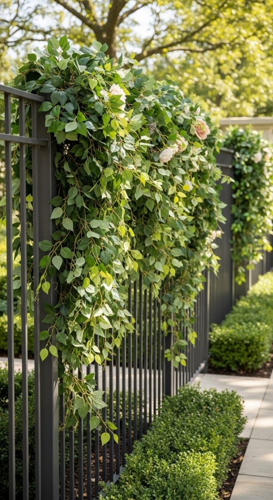 Faux vines can cover walls or fences beautifully.