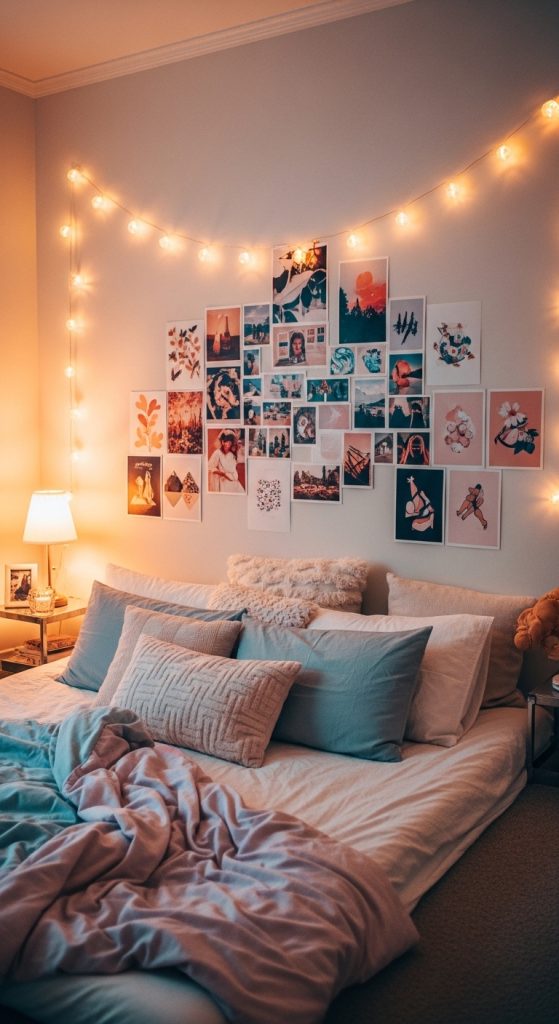 - Hang fairy lights on the wall.