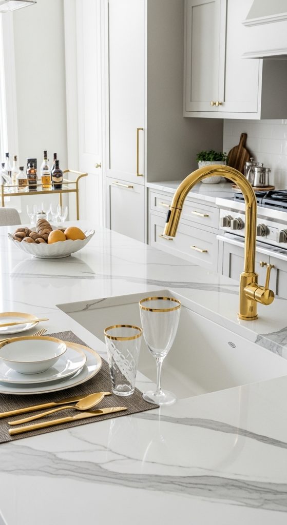 - Gold Faucets: Upgrade a standard faucet to gold for a modern, luxurious kitchen look.