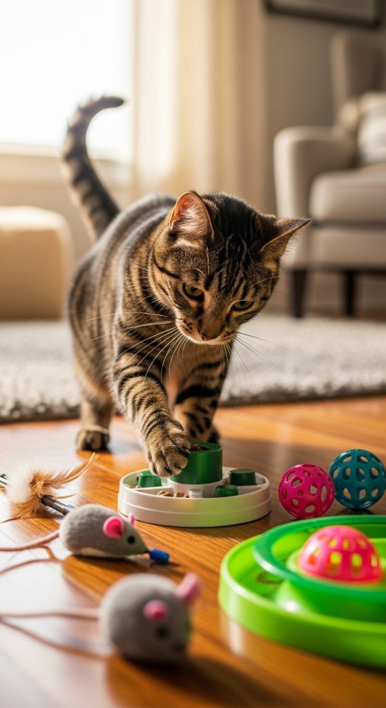 Boredom can lead to behavioral problems in cats, so providing interactive toys is key to keeping them mentally sharp. Puzzle feeders, treat-dispensing toys, and interactive balls can engage their hunting instincts. Cats enjoy the challenge of figuring out how to get a treat or toy, which can prevent them from becoming lazy or frustrated.