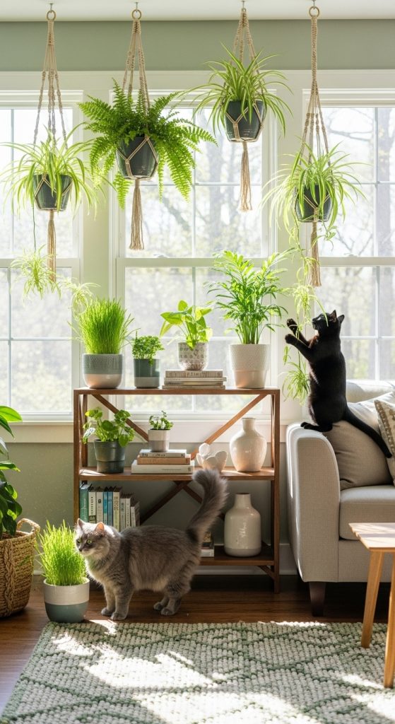 You can place cat-friendly plants on shelves, tables, or in hanging planters, but make sure they are accessible to your cat and placed in a way that doesn’t create a mess. Avoid toxic plants like lilies, poinsettias, and philodendrons, as ingestion can be dangerous. Providing safe greenery encourages natural behaviors like nibbling and exploring while adding a fresh touch to your home décor.