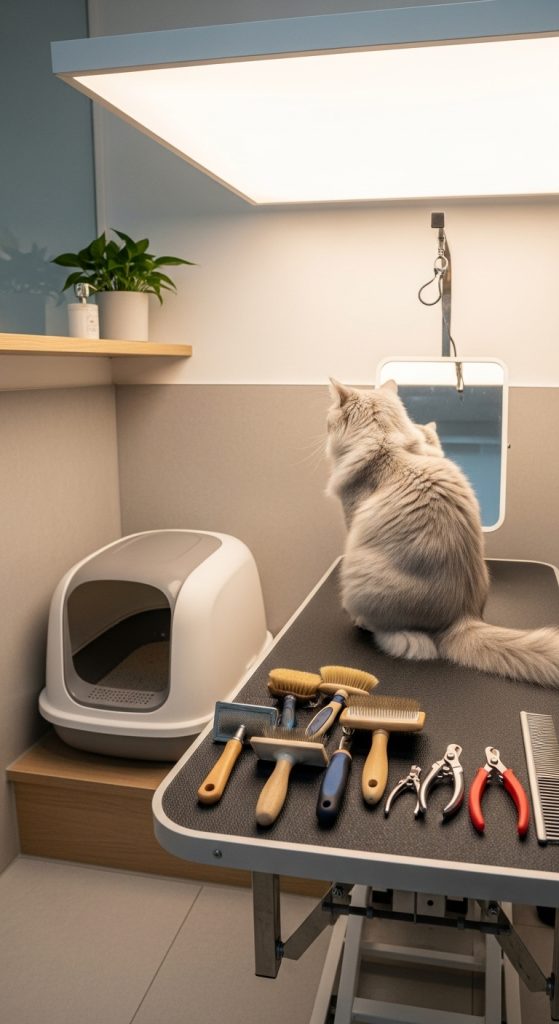 Maintaining your cat’s hygiene is important for their health and your home’s cleanliness. Create a designated grooming station with brushes, nail clippers, and wipes easily accessible. Regular brushing prevents matting, reduces shedding, and minimizes hairballs.