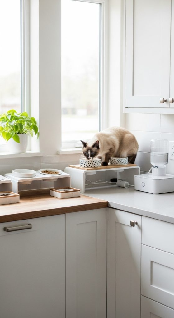 Feeding isn’t just about giving your cat food—it’s an opportunity to make mealtime stimulating and organized. Consider using elevated feeders or puzzle feeders that challenge your cat while eating. Some cats prefer eating at a higher level to feel more secure, and elevated stations can also reduce neck strain.