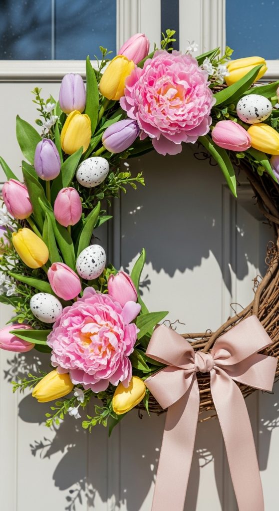 A handmade Easter wreath adds charm to your front door.