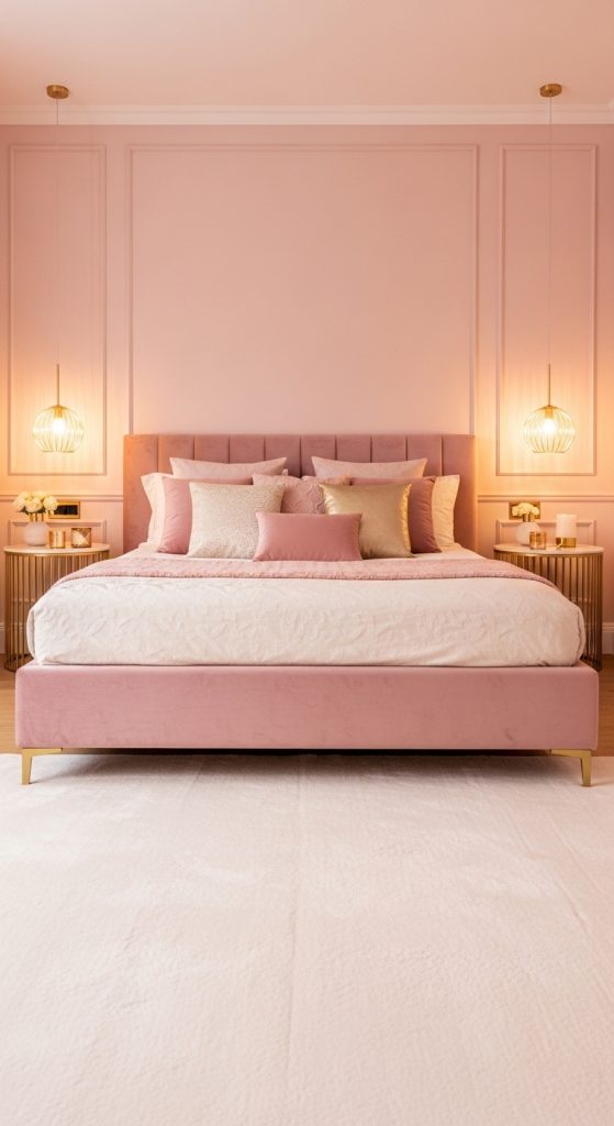 Soft blush pink paired with gold creates a feminine and elegant luxury aesthetic.
