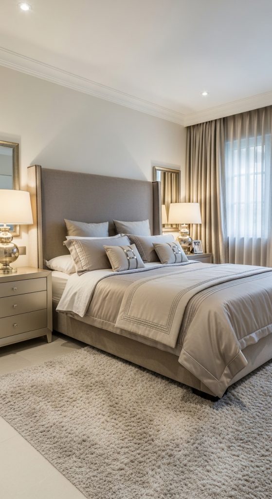 Taupe and champagne tones create a soft and sophisticated environment.