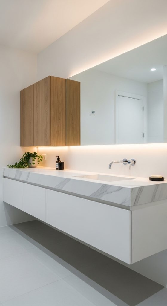 Today’s master bath vanity designs are not just about sinks and mirrors—they are about experience. From floating vanities to double-sink setups, from marble countertops to wood-textured finishes, every detail contributes to the atmosphere of relaxation and elegance.