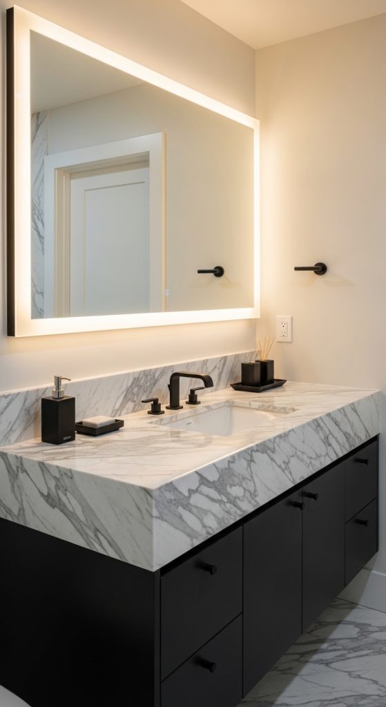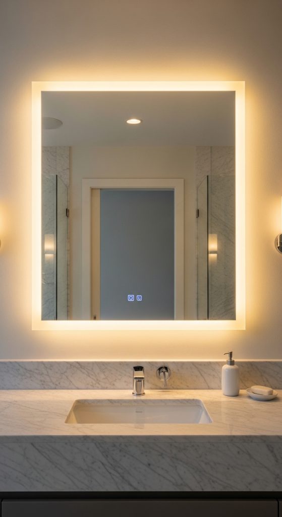 A backlit mirror adds both functionality and ambiance. It provides soft lighting ideal for grooming and creates a spa-like feel.