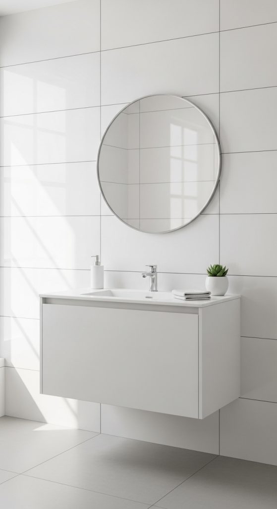 It reflects light well, making the space feel larger and brighter. Keep accessories minimal for a clutter-free appearance.