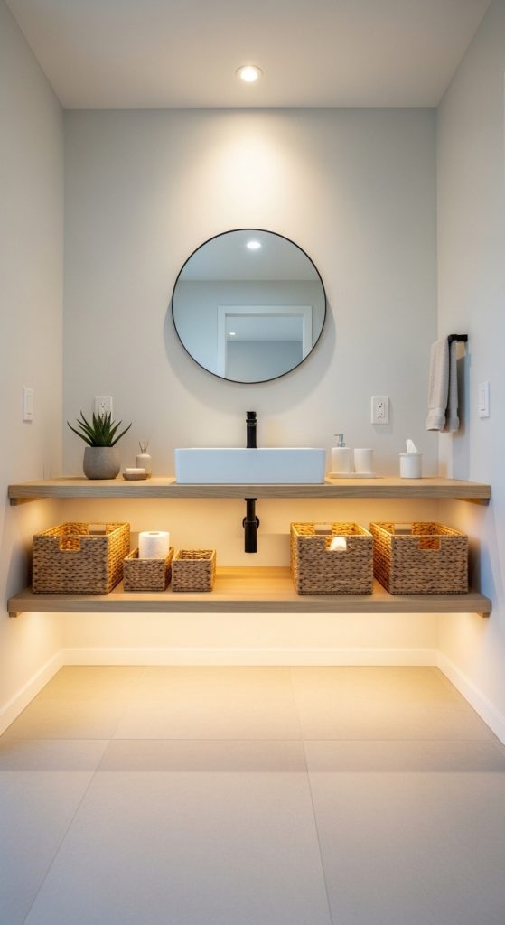 Storage design is equally important. Drawers, cabinets, and hidden compartments help keep the countertop clean and organized. A clutter-free vanity instantly makes the bathroom feel more luxurious.