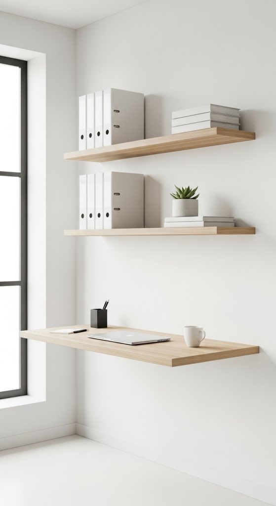 A floating desk is perfect for ultra-minimalist living. It saves floor space and creates a clean, modern look.
