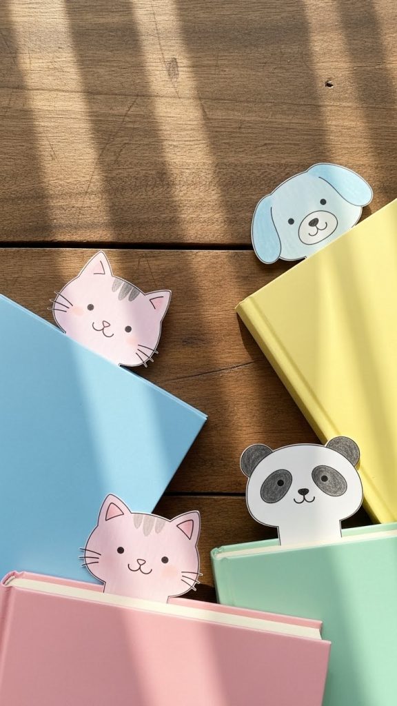 If you love reading, kawaii paper bookmarks are both practical and adorable. You can create simple characters peeking over the edge of a book or design full-page bookmarks with cute faces.