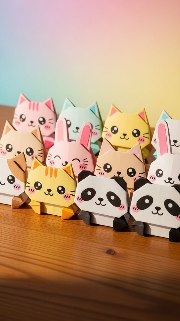 Origami is the classic art of folding paper into various shapes, and combining it with kawaii elements makes it extra adorable. You can start with simple designs like cats, bunnies, or pandas and add cute details such as big eyes, rosy cheeks, or tiny smiles.