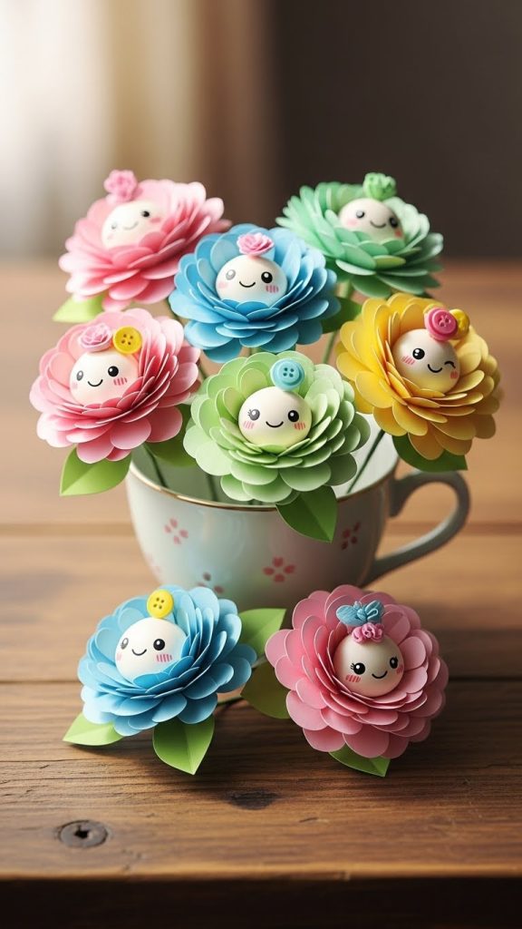 Paper flowers are classic DIY decor, but adding kawaii elements can transform them into adorable art pieces. Think flowers with smiling faces or pastel colors that feel playful rather than realistic.