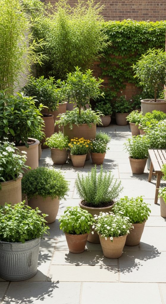 A herb garden patio combines beauty and practicality by allowing you to grow fresh herbs right outside your door.