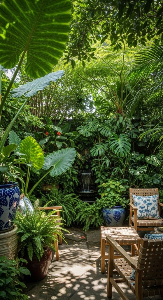 A tropical garden brings lush greenery and vibrant vibes to your patio.