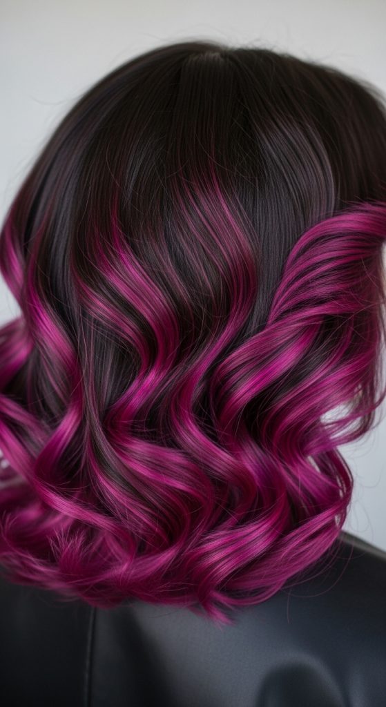 Magenta pink is rich and bold, offering depth and intensity. This shade stands out beautifully against dark hair.