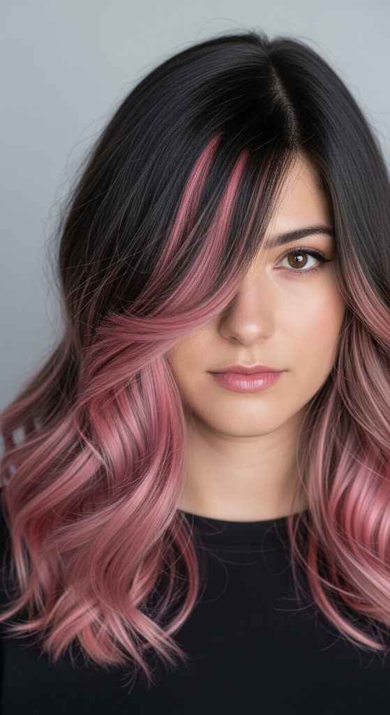 Peekaboo pink hair also pairs beautifully with different hairstyles. It shines through braids, waves, curls, ponytails, and updos, creating dimension and visual interest. This movement-based effect is especially appealing for social media and photography, which is why Pinterest users love saving these ideas for inspiration.