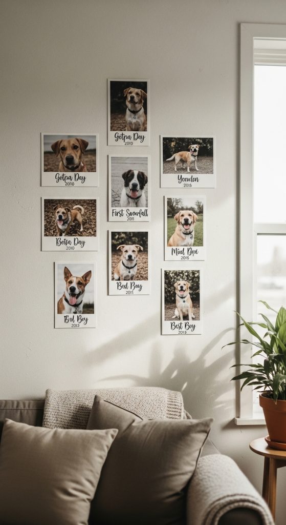 A pet memory timeline wall tells the story of your pet’s life—from puppy or kitten days to the present.