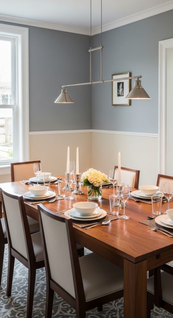 Two-tone walls work well in dining rooms, hallways, and bedrooms. They can also be used to highlight architectural features or create the illusion of a taller room.
