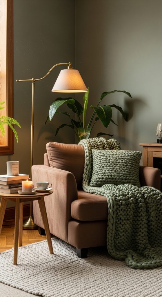 A cozy corner with these colors creates a relaxing reading space.