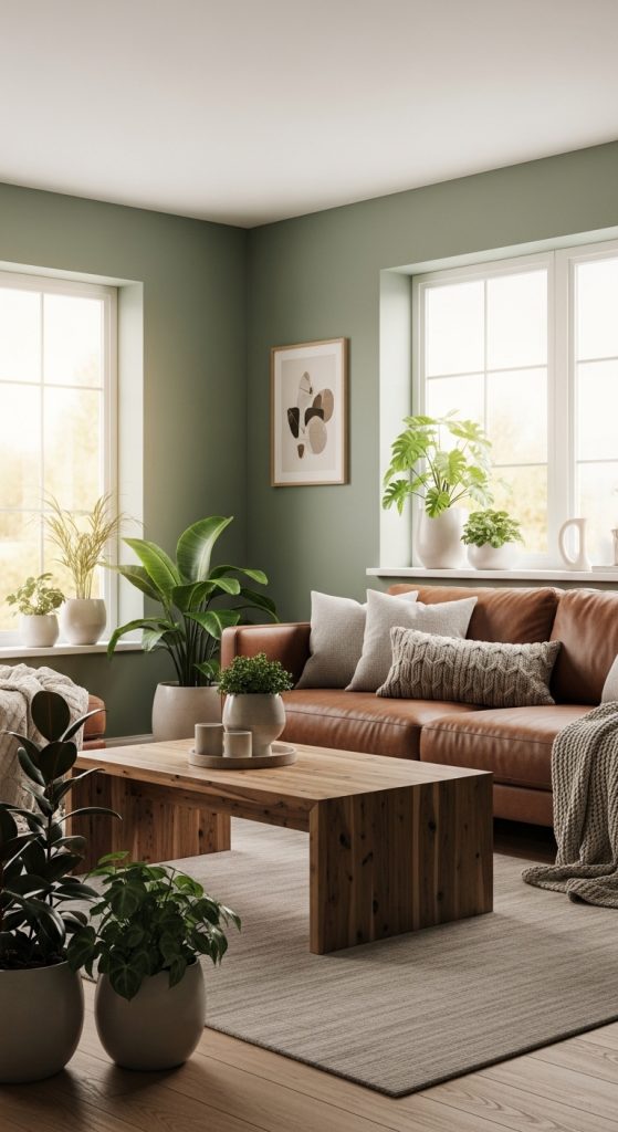 Sage green and brown have become one of the most popular color combinations for modern home interiors. This pairing brings together the calm, natural beauty of sage green with the warmth and richness of brown tones, creating a cozy and balanced living room environment. These colors work beautifully together because they both draw inspiration from nature—sage green reflects the soft tones of leaves and plants, while brown represents wood, earth, and natural textures.
