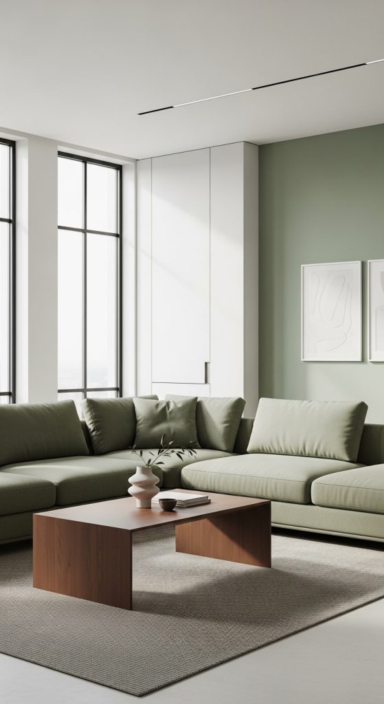 6. Modern Sage and Brown Living Room
